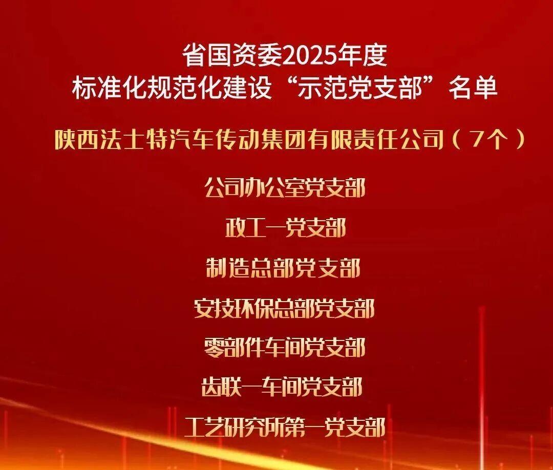法士特7個黨支部榮獲省國資委“示范黨支部”稱號